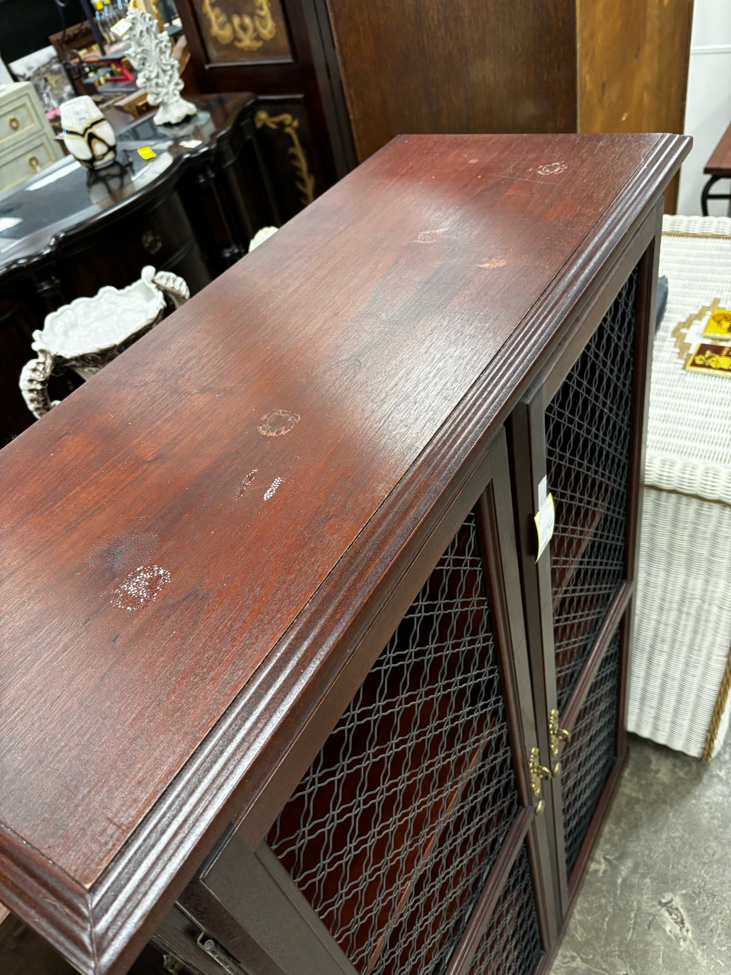 Dark Wood Bookcase with Wire Doors (no key)